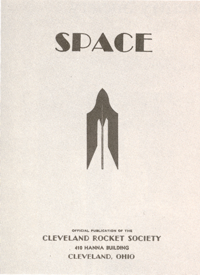Cleveland Rocket Society (1933-37) The brainchild of Ernst Loebell, a German-born engineer, they designed, built and tested a number of liquid-fueled rockets starting in 1933 that burned a combination of liquid oxygen and gasoline. One of the first to use the idea of selling rocket post cachets (rocket mail postcards) to fund motor development. Support also came from Marcus Hanna, a wealthy local political boss at the time, who gave them office space in the Hanna Building in downtown Cleveland, and a place to test motors at the family lakefront estate in Waite Hill, near Kirtland. After an explosion the testing was moved to Highland Heights, probably close to what is now the Cuyahoga County Airport. Interesting enough, the designs were scrutinized and approved by Robert Goddard, known as the father of American rocketry. They published a short-lived mimeographed rocketry magazine, which ran for five issues between 12/33 and 9/34. The most illustrious of CRS members was Lieutenant Commander Thomas G.W. Settle, then the world's champion ballon stratosphere flyer. Despite all their success with motor development, they never actually flew a rocket. The Great Depression and World War 2 put an end to their endeavors, and all except one of their motors were scrapped for the metal during WW2. The remaining motor and much of their papers are archived by the Ohio Historical Society at Case Western Reserve University.