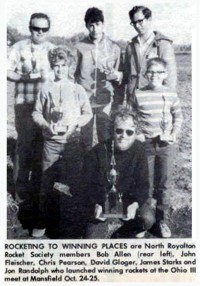 North Royalton Rocket Society (NRRS, Section #180) (1970–74) The NRRS was formed as a NAR Section in 1970 by Jon Randolph and Bob Allen. Originally called the Metro City Rocket Society, by including "North Royalton" in the name meant the city provided publicity in the local paper, the Royalton Recorder, and a meeting room in the old (and later condemned) North Royalton Junior High School. Meetings were held twice monthly. The primary reason North Royalton was chosen was the availability of a flying field which was the WJW-TV transmitter site at Route 82 and Ridge Road. On a calm day, this site could accommodate F motors, the largest available at the time. Launches were held at the base of the WHK radio tower in what was called Broadcast Park, the highest point in Cuyahoga County. The club was one of the first to purchase a complete two rail 12 pad launch system from Centuri Engineering. Initially there was a hobby shop, Breyley's (actually a slot car facility that also sold rocketry supplies) quite close to the launch site and its certain that this also played some part in the site selection. Another frequented hobby shop and the only one in Cleveland selling FSI and Centuri Enerjet motors was the Tom Thumb Raceways, also a slot-car hobby shop, located in Maple Heights. Unfortunately, as with most hobby shops that bought into the slot car fad, both were out of business by 1971. The club was quite active in NAR competition in all divisions and section co-founder Jon Randolph won the D Division National Championship in 1971, and later went on to compete in the Internats. Co-founder Bob Allen left competition after 1971 but remained in the section for a couple more years. The section folded in 1974 after many club members left the club for college and then-president Randolph left the hobby.